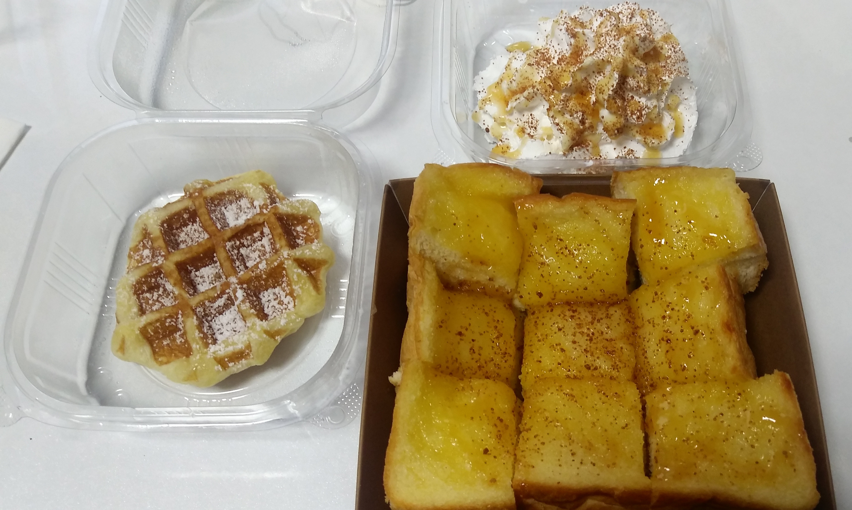 꿀과 시나몬가루+생크림과 캬라멜시럽이 두꺼운 식빵에 올라가서 푸짐하고 달콤하다.