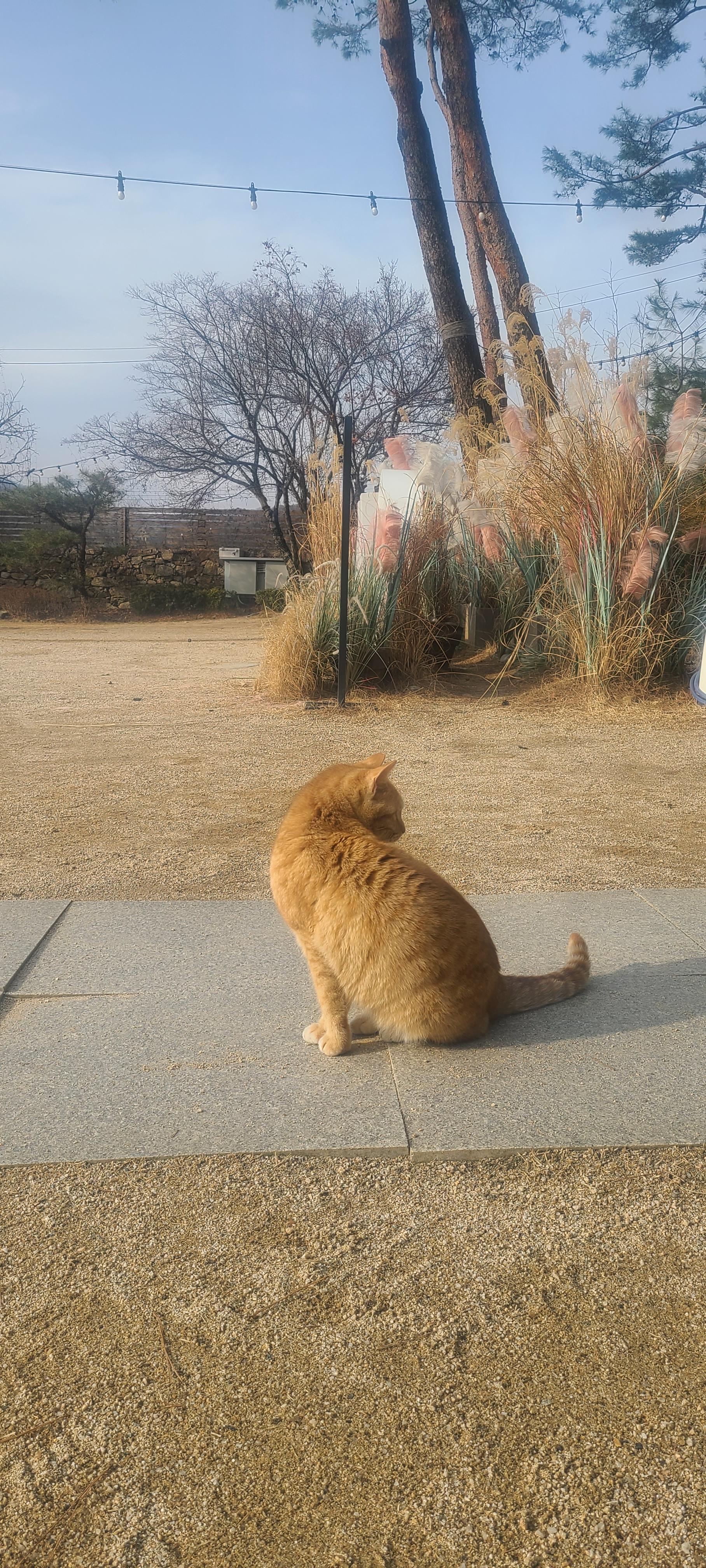 고양이들이 지붕에도 있고, 카페 입구에도 있고, 마당에도 있고