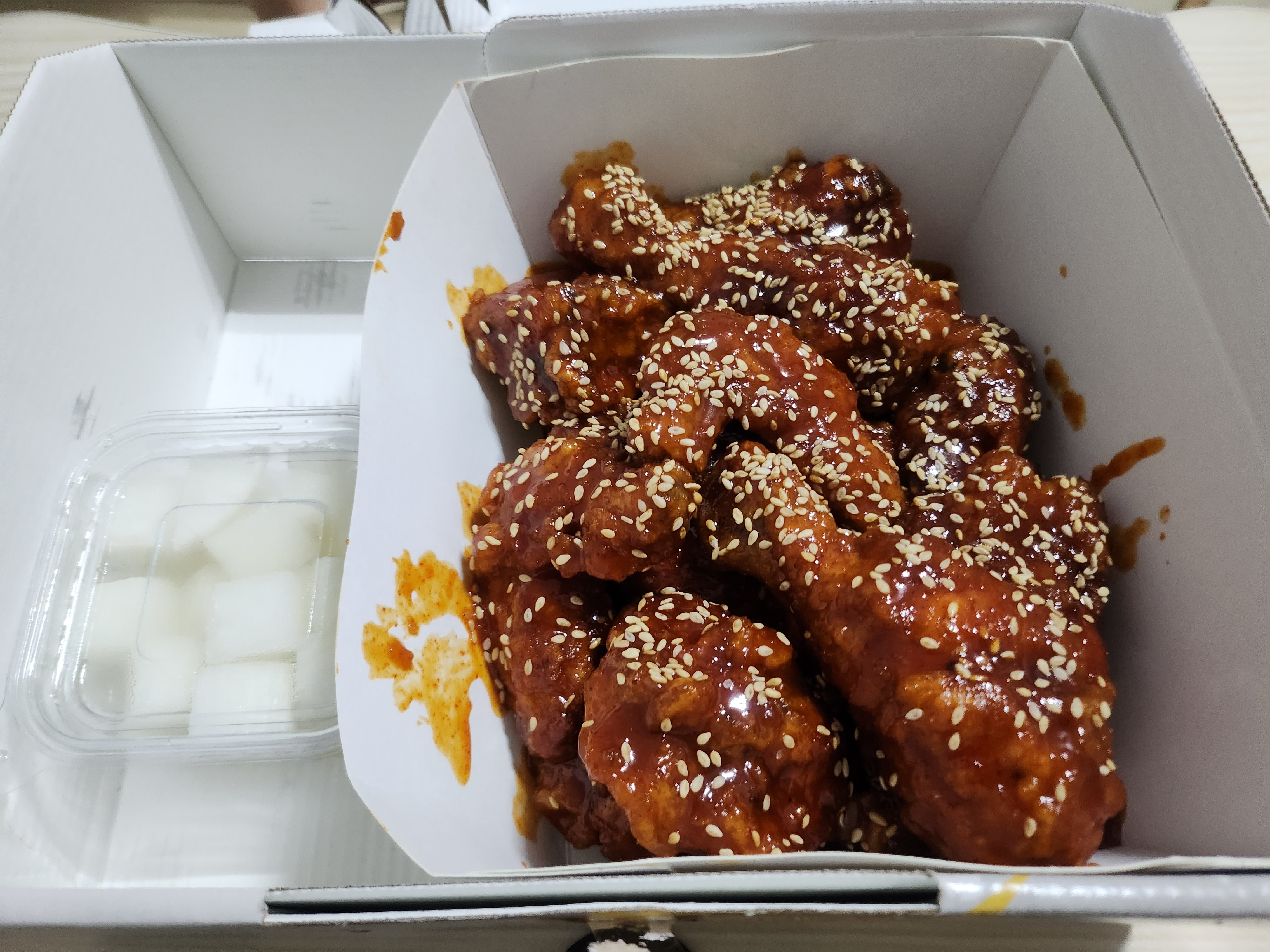 그냥 매운 양념치킨 말고 매운불 양념치킨 시킨 게 신의 한수 였던 듯