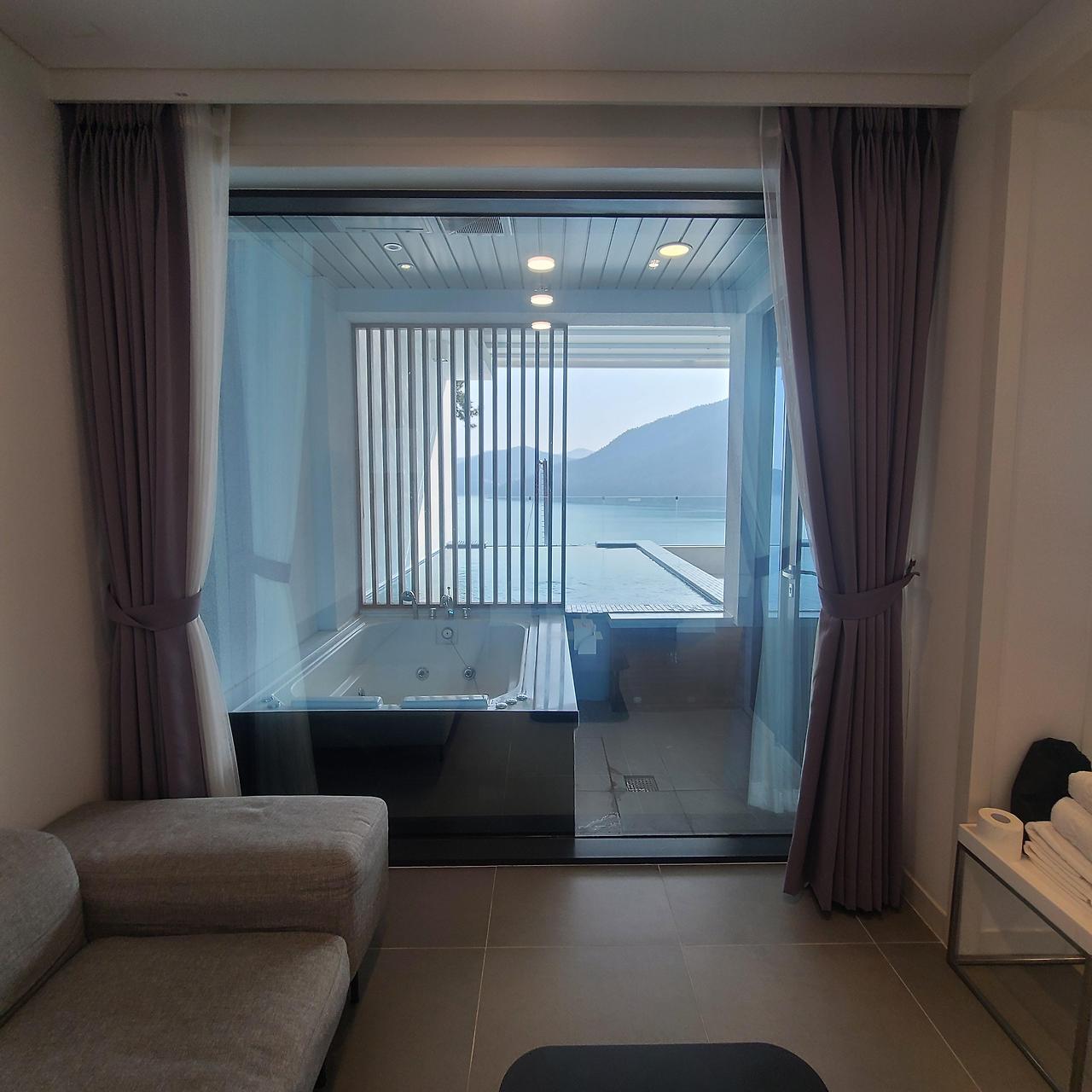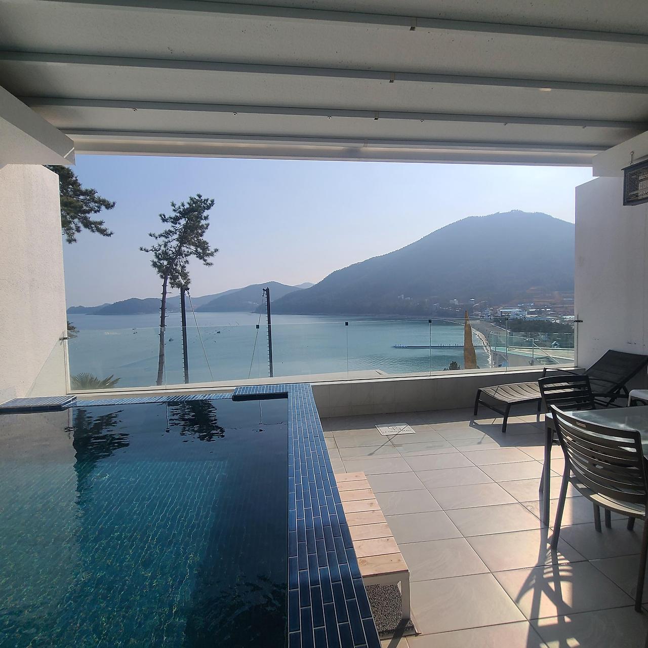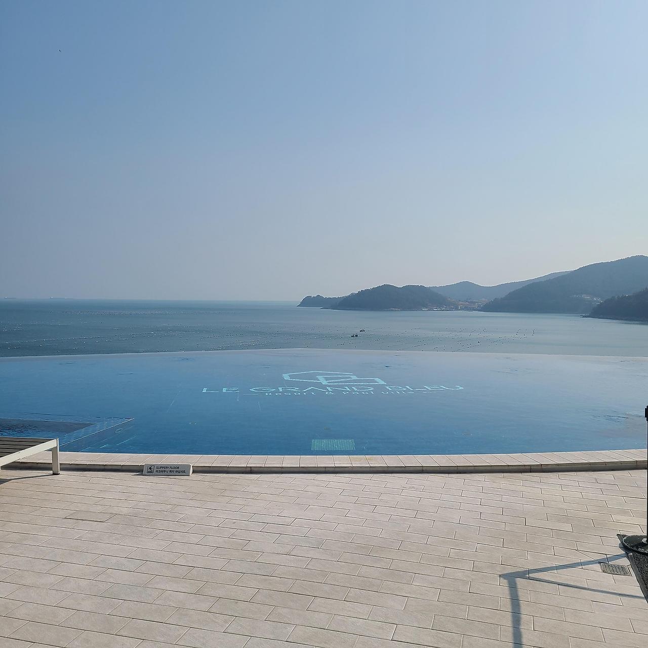 우린 2시에 도착했는데 체크인이 3시라 기다리며 인피니티풀과 바다 구경~여수 르그랑블 인피니티 풀과 여수 바다뷰
