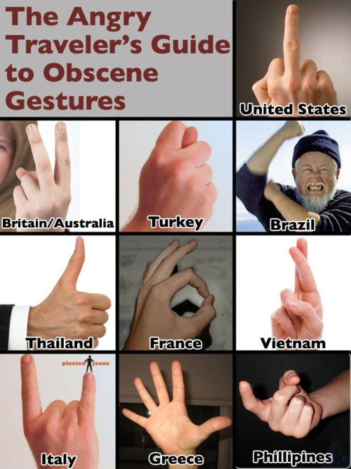 이기사주소 : https://news.mt.co.kr/mtview.php?no=2011011814514807682&type=1 기사주소 복사 ‘화난 여행자들의 음란 욕 가이드(The Angry Traveler's Guide to Obscene Gesture)’라는 나라별 손가락 욕 사진이 화제를 불러