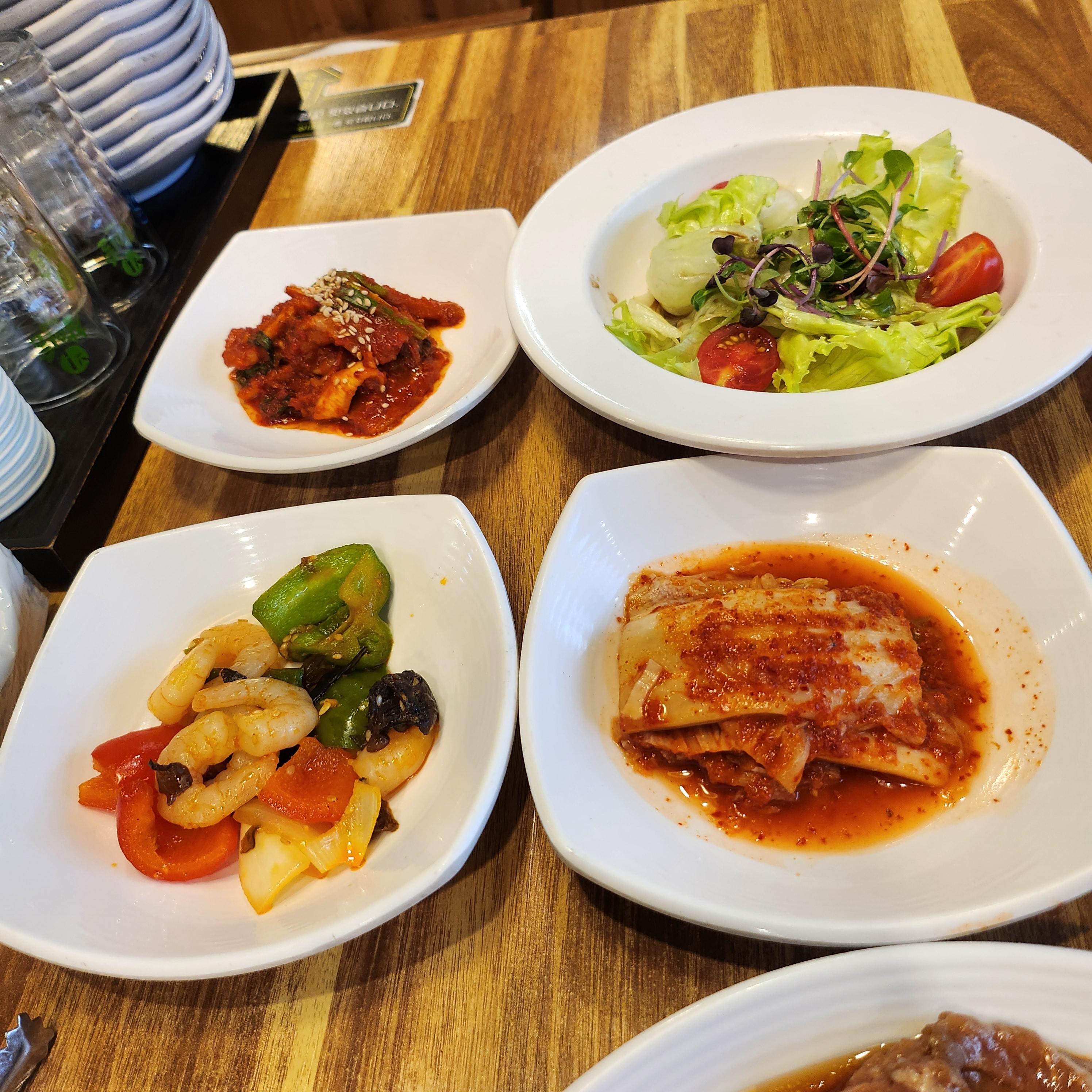 샐러드, 새우야채볶음, 간장게장, 파채 등 하나같이 맛있고, 고기 못지 않게 맛있었다.
