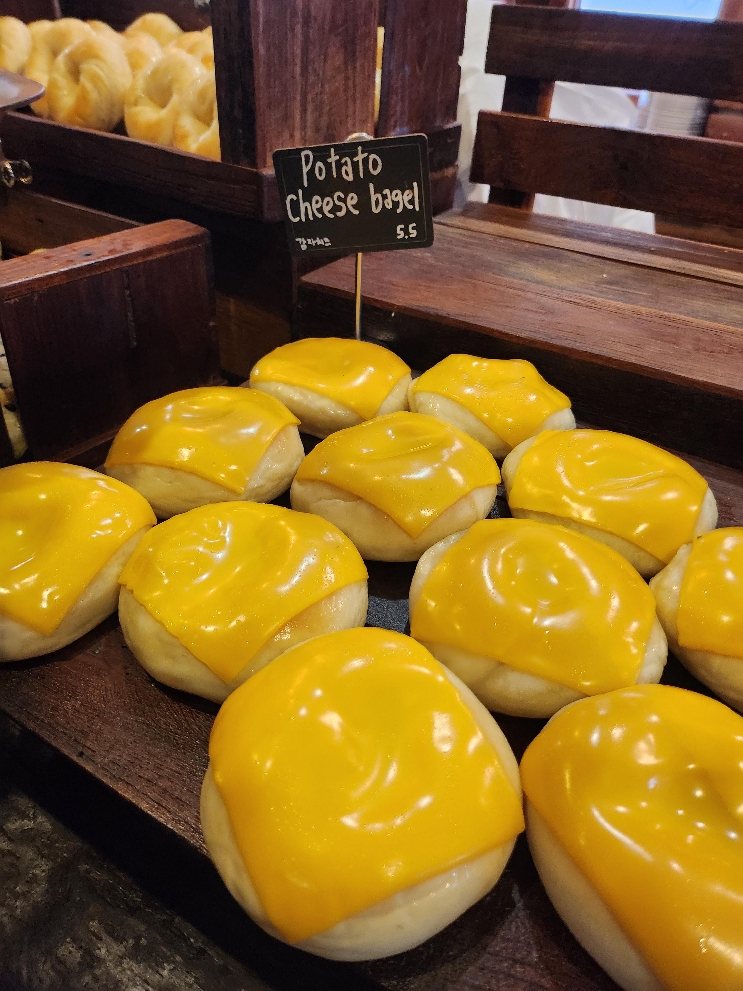 꿩대신 닭, 포테이토 치즈 베이글도 나름 맛있다고 하는데... 나는 그렇게 탄수화물을 때려박고 싶지가 않아서 안샀다. 그런데 줄서서 조금씩 자리를 옮기는 10여분 동안, 이 마저도 빛의 속도로 사라짐 ㅋㅋㅋㅋㅋㅋㅋ