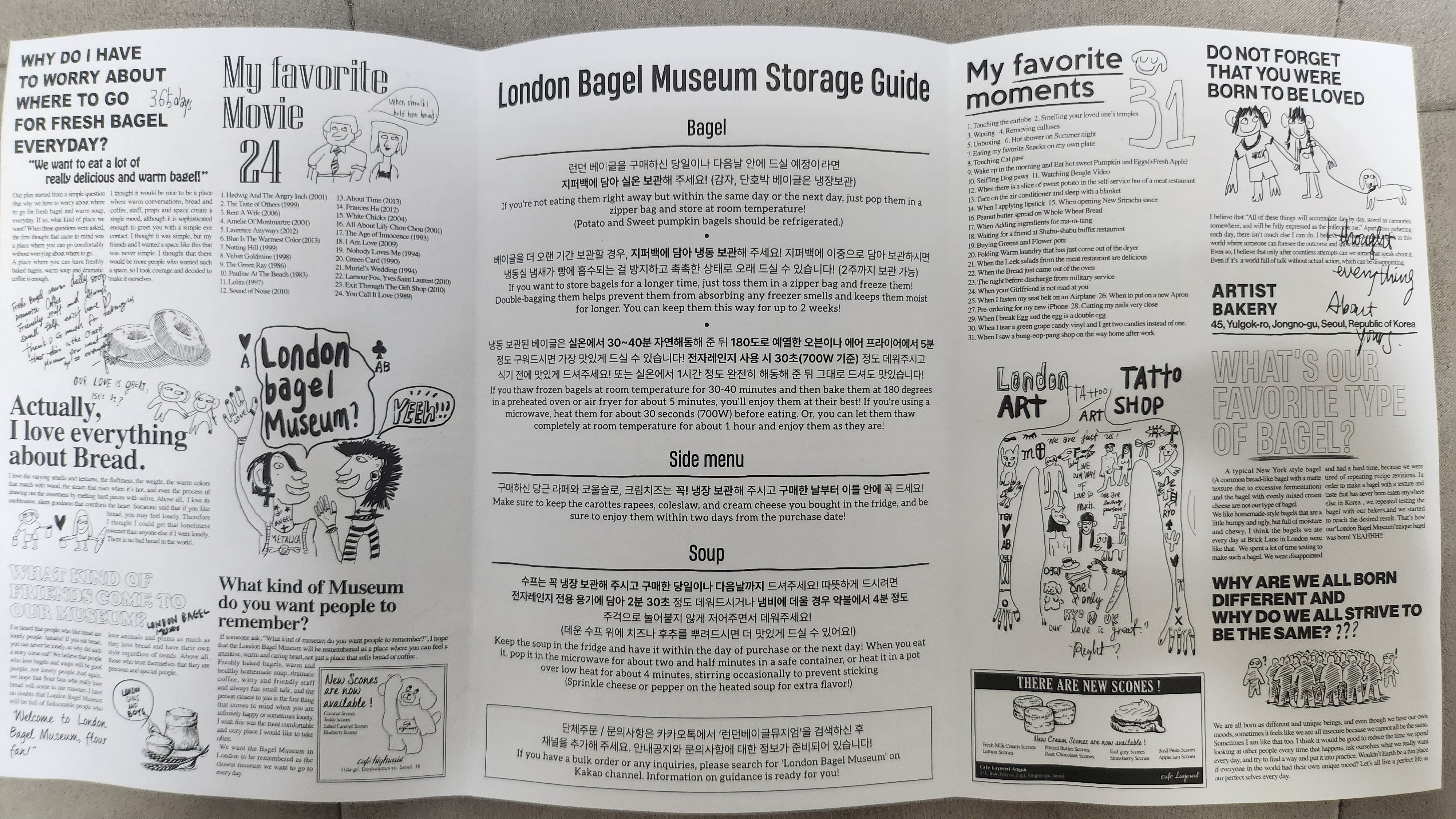 빵을 사면 런던베이글뮤지엄 브로셔를 함께 동봉해준다.