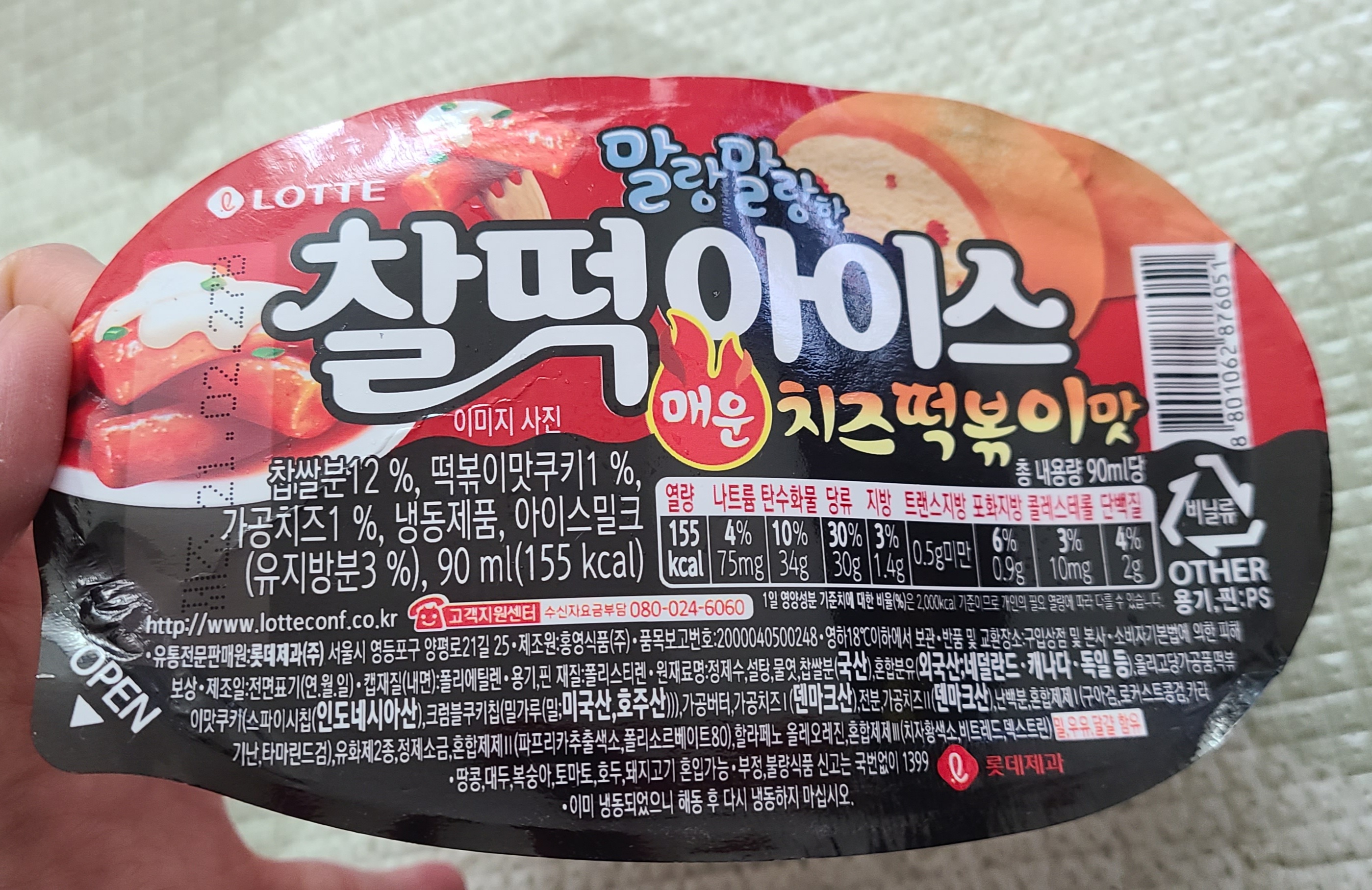 그 이름도 유명한 롯데의 찰떡아이스에서 매운 치즈 떡볶이맛 아이스크림이 나왔다.